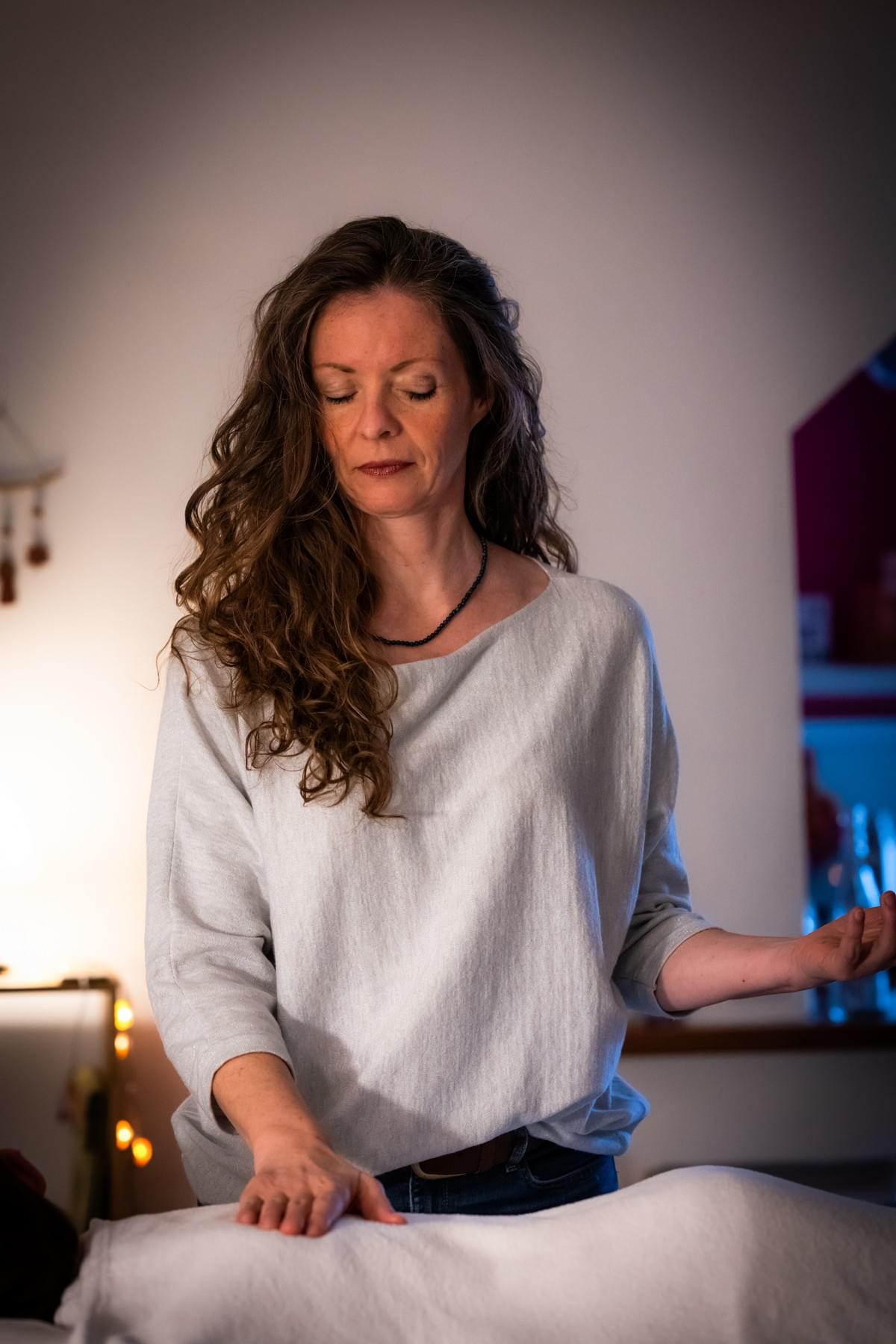 - une lecture d'aura (optionnelle) pour accéder à une compréhension plus profonde de votre Être : "qu'est ce que je suis venue expérimenter, apprendre et transcender au travers de cette histoire de vie ?". Elle n'est pas réalisée de façon systématique, mais selon le besoin de l'âme au moment de la séance. Elle peut être proposée lors d'une séance dédiée, ultérieurement. Elle s'effectue debout en sous-vêtements (blancs de préférence), dans la salle de soins qui est éclairée par une bougie.